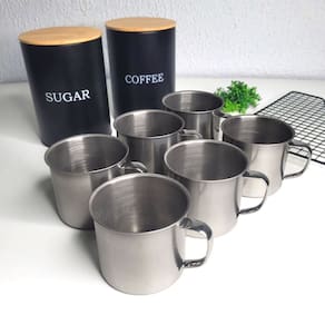 Contem: 6 Canecas Volume: 350 ml Medidas: 11 x 7,5 cm Material: Aço inoxidavel Marca: TUUT