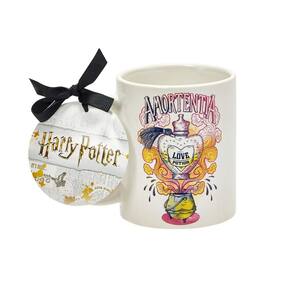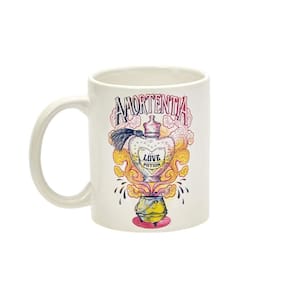 - A caneca de cerâmica de 325 ml apresenta um exterior branco com gráficos coloridos da Amortentia Love Potion e a frase "You Are So Loved".