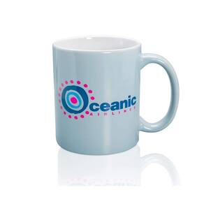 - DESIGN DIVERTIDO: A caneca branca apresenta o logotipo da fictícia Oceanic Airlines.