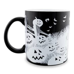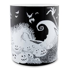 - BRILHA NO ESCURO: Jack Skellington percorre um cemitério nesta cena assustadora, com morcegos voando no céu da meia-noite. Esta caneca assustadora ganha vida nas sombras, com uma característica impressionante que brilha no escuro.