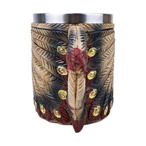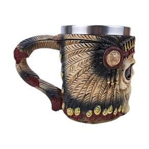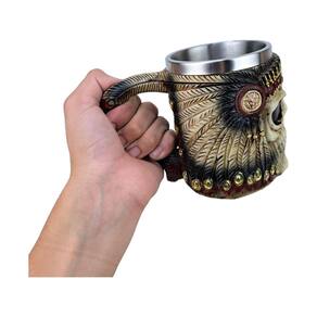 Caneca de Caveira Com Cocar Indígena 3D - Resina e Inox Caneca de Caveira Com Cocar Indígena 3D em Resina e Inox