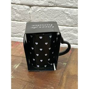 Características do produto Material: cerâmica Capacidade: 270ml Cor: preta com estampa de corações brancos Dimensões axlxp : 10 x 11 x 8 cm