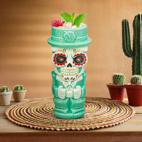 É a festa de um homem morto! Agora, aqui está algo digno de estar à altura da ocasião! Comemore este feriado com dois novos Geeki Tikis. Esses produtos de bebida criativos e coloridos apresentam nossa visão tiki-fied deste feriado especial. As canecas Hombre e Mujer Geeki Tikis apresentam uma calavera (caveira) lindamente esculpida com cores vibrantes que representam a vitalidade e a personalidade individual do falecido. Feita de cerâmica de alta qualidade, cada caneca comporta entre 16-18 onças. Experimente o aloha a cada gole!