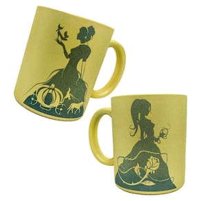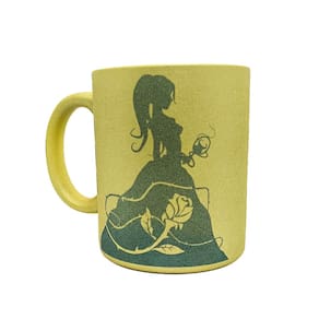 Caneca De Ceramica Glitter Dourada Princesa Bela E Cinderela