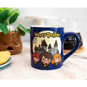Silver Buffalo Caneca de cerâmica Chibi Animated Harry Potter Trio Castelo de Hogwarts, 400 ml