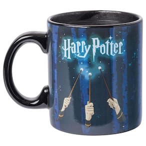- Caneca mágica de Harry Potter: a caneca azul escura apresenta um pano de fundo de céu noturno com seus três bruxos favoritos Harry Potter, Ron Weasley e Hermoine Granger segurando suas varinhas no céu noturno. Adicione sua bebida quente para uma surpresa mágica.