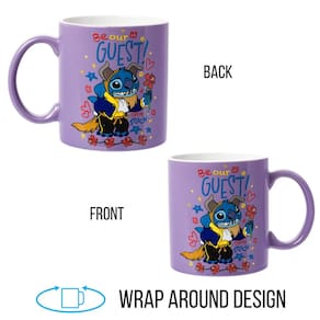 - Adorável traje de monstro de ponto: adorável caneca de cerâmica com Stitch, de Lilo e Stitch, em sua fantasia icônica de Fera, adicionando um toque de charme havaiano à sua rotina matinal ou prateleira de colecionador. Como uma homenagem à Bela e a Fera, tem as famosas palavras "Be Our Guest", exibidas.