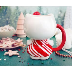 Silver Buffalo Sanrio Hello Kitty Christmas Holiday Candy Cane Dress 3D Sculpted Ceramic Caneca, 590 ml
