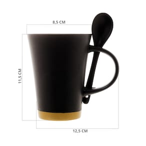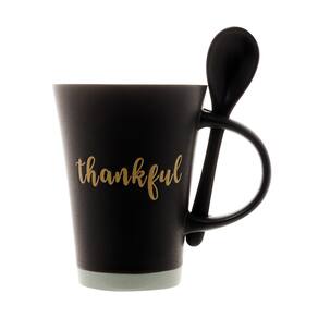 Caneca de Cerâmica Thankful Preta 310ml com Colher