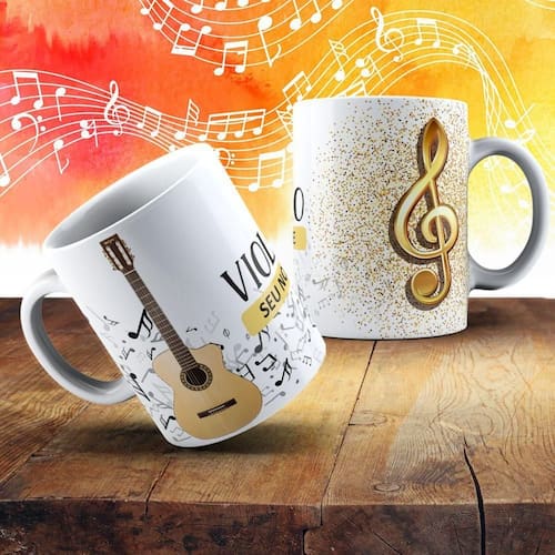 - 1 Caneca de Porcelana 325ml Personalizada com Estampa de Instrumentos Musicais