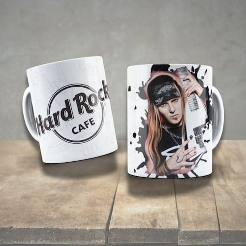 - 1 Caneca de Porcelana 325ml Decorada Ícones da Música Personalizada (Estampa Selecionada)