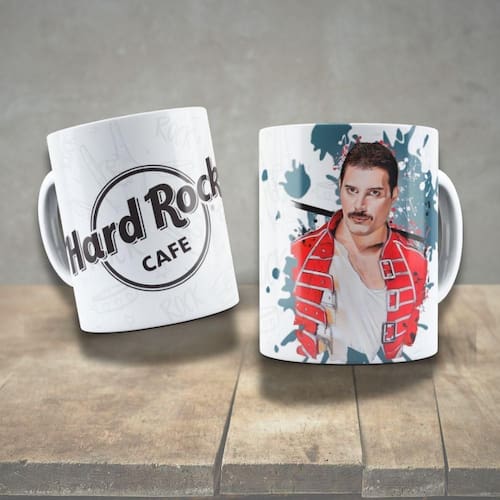 - 1 Caneca de Porcelana 325ml Decorada Ícones da Música Personalizada (Estampa Selecionada)
