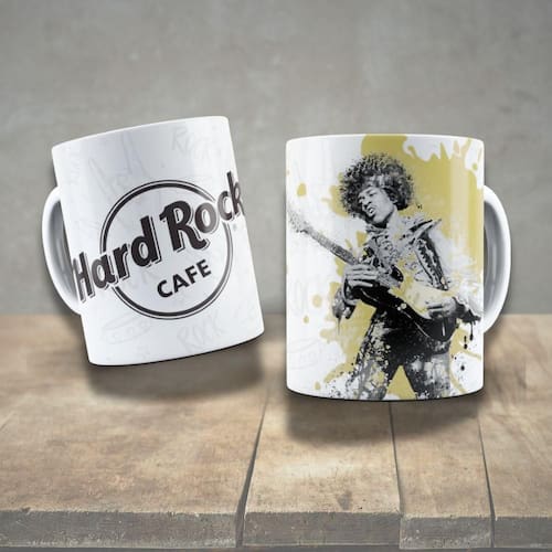 - 1 Caneca de Porcelana 325ml Decorada Ícones da Música Personalizada (Estampa Selecionada)