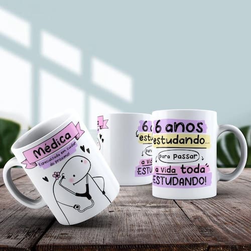 - 1 Caneca de Porcelana 325ml Personalizada Flork Profissões Feminino