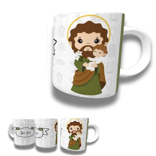 Caneca De Porcelana 325ml Personalizada Santos Católicos Decorada São José