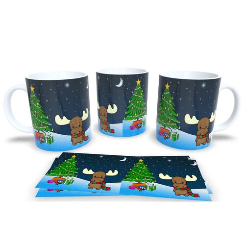 Caneca personalizada de porcelana de alto brilho, com alça e interior branca Coleção Natal.