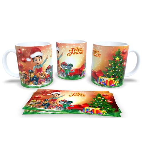 Caneca personalizada de porcelana de alto brilho, com alça e interior branca Coleção Natal.