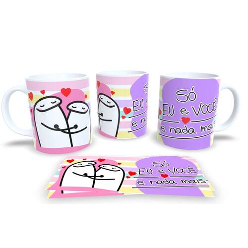Caneca personalizada de porcelana de alto brilho, com interior e Alça Branca Coleção Flork Namorados.