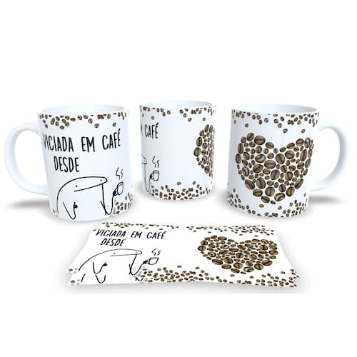 Caneca de Porcelana Branca Personalizada Coleção Flork Temas Variados 2