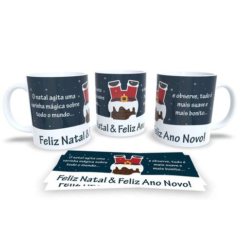 Caneca de Porcelana Branca Personalizada Natal Papai Noel