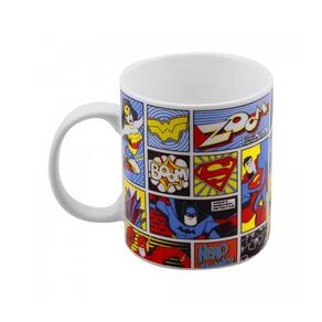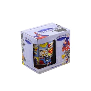 Caneca de porcelana da Liga da Justiça decorada com imagens dos Heróis dos Desenhos em Quadrinhos de toda a Turma . Com Capacidade 300 ml, nas Dimensões Alt. 9, Larg. 12. Comp. cm. Produto Licenciado Liga da Justiça . Esta caneca pode ir ao micro ondas e lava louças que não descasca, não desbota ou trinca. Conservação: Lavar com aguá e detergente neutro e esponja macia.