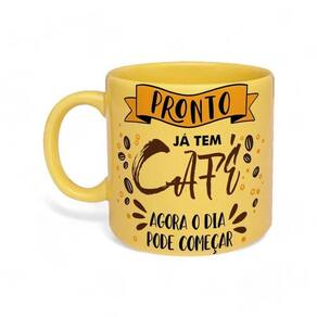 Caneca de Porcelana Já Tem Café Tpc para Bebidas Quentes com Acabamento Preto Ideal para Uso Diário Amarelo Simas