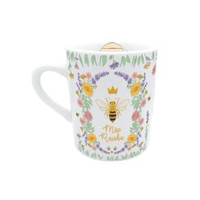 Caneca de Porcelana com Suporte Mãe Rainha Tpc para Café Ou Chá em Porcelana com Mini Bandeja de Pinus Branco Simas