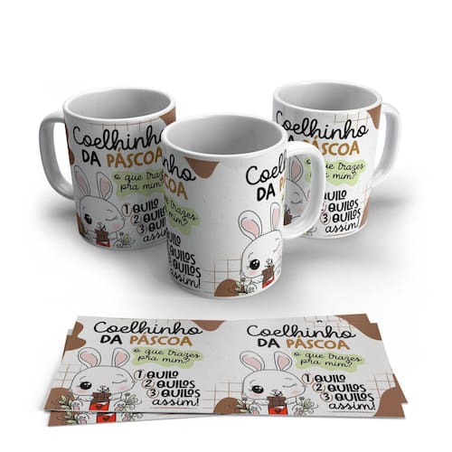 Celebre a Páscoa com estilo e bom gosto com as nossas canecas de porcelana personalizadas. São mais de 70 modelos diferentes para você escolher, com temas variados como coelhinhos de páscoa, temas católicos, memes e chocolates. As canecas são importadas, com qualidade premium, e podem ser usadas para tomar café, chá, chocolate quente ou o que você preferir. Além disso, elas são ótimas para presentear quem você ama ou decorar a sua casa. Aproveite e faça já o seu pedido, entregamos em todo o Brasil com rapidez e segurança. Garanta a sua caneca de páscoa 2024 e tenha uma Páscoa mais alegre e divertida.Capacidade: 325 mlMaterial: Porcelana ImportadaAltura da caneca 9,5 cmDiâmetro da caneca: 8 cmCor da Caneca: BrancaCuidado: Lavar com água, sabão e esponja macia. Não utilizar produtos químicos e abrasivos.Satisfação Garantida! Amamos canecas, e nosso catálogo está repleto de canecas que gostaríamos de ficar com ela pra gente, por isso curta bastante! Usando uma caneca você pode economizar até 300 copos descartáveis! Vamos ajudar o nosso planeta.Item incluso:Uma Caneca de Porcelana 325 MLQualidade Premium e estampa em alta definição