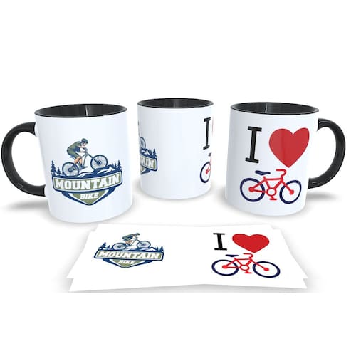 Caneca personalizada de porcelana de alto brilho, com interior e Alça PretaColeção Ciclismo.