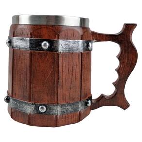 Caneca De Resina Estilo Barril Viking Chopp 400ML Medieval Caneca De Madeira e Aço Estilo Barril Viking 400ML Medieval