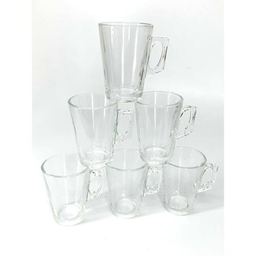Características do Produto - Contem: 1 conjunto 6 peças- Material: 100% Vidro- Medidas (Largura X Altura X Profundidade): 20x10x12 cm- Medidas da caneca: 6x8x6 cm- Capacidade: 130ml- Peso: 1,052Kg Marca: Best Kaza