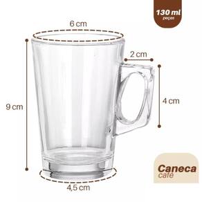 Caneca de Vidro 130ml Desfrute de suas bebidas quentes com estilo e elegância com o Conjunto de Canecas de Vidro Lungo. Perfeitas para adicionar um toque de charme às suas criações favoritas, essas canecas são ideais para servir uma variedade de bebidas quentes, desde cappuccinos cremosos até chocolates quentes reconfortantes. Com uma capacidade de 130ml, essas canecas são ideais para qualquer ocasião, seja para desfrutar de uma bebida quente pela manhã ou para compartilhar momentos especiais com amigos e familiares. Além disso, elas são facilmente limpas na máquina de lavar louça, proporcionando conveniência em sua rotina diária.