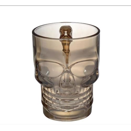 Caneca de vidro decorativa caveira crânio âmbar 500ml A caneca de vidro caveira de 500ml, na cor âmbar, é perfeita para os amantes de cerveja, chopp e drinks tropicais. Beba com estilo, mostre a todos o design semelhante a um crânio, com uma alça em formato de ossos, em cores que impressionam. Esta peça deixa sua marca registrada em momentos de confraternização, se tornando parte de boas memorias.