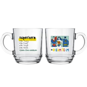 Tema: DC Comics.Personagem: Heroes.Capacidade: 300ml.Material: Vidro.Tamanho do produto: Aproximadamente 10cm.