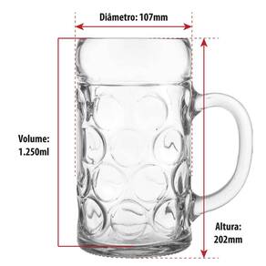 Essa maravilhosa caneca de chopp pode ser um presente sensacional para seu amigo ou alguém especial de sua família. Indicado para: Cerveja e Chopp Material: Vidro Capacidade: 1.250ml