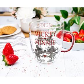 - Caneca de vidro: esta caneca de vidro com alça de glitter licenciada oficial do Mickey e Minnie comporta 400 ml de bebidas favoritas, mostre seu amor por Mickey e Minnie e divirta-se com esta caneca de vidro com uma linda alça de glitter vermelha que mostra um momento adorável com Minnie e Mickey