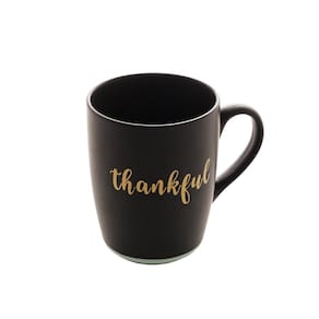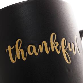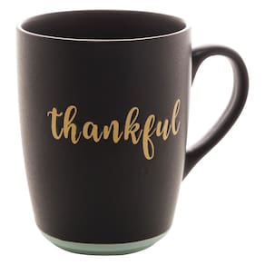 Caneca Em Cerâmica Bon Gourmet Thankful Preto E Azul 340ml