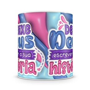 Embrace a sabedoria da fé e da entrega com a Caneca Estampada que traz a inspiradora mensagem: "Deixe DEUS Escrever a Sua História".