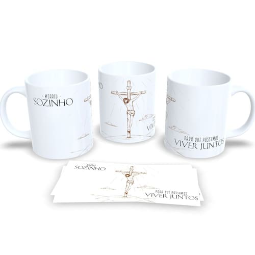 Caneca personalizada de porcelana de alto brilho, com alça e interior branca Coleção Religião.