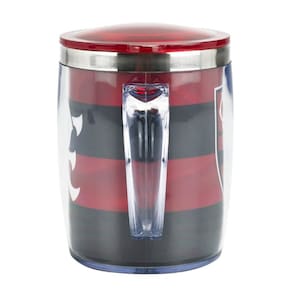 Caneca FIamengo Térmica 450 ML Uma caneca para nação Flamenguista assistir e torce ao melhor estilo, ela é feita de plástico translucido com tampa e acabamento interno em inox. Uma ótima dica para presentear aquele seu amigo do Rubro-negro.