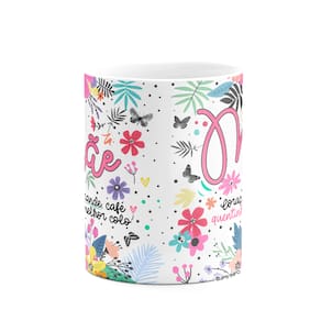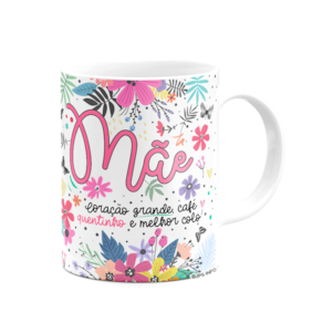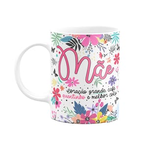 Caneca Floral Família - Mãe - Coração grande, café quentinho