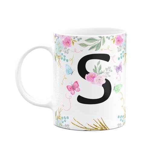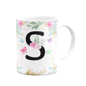 Caneca Floral - Inicial do nome letra S - 325ml