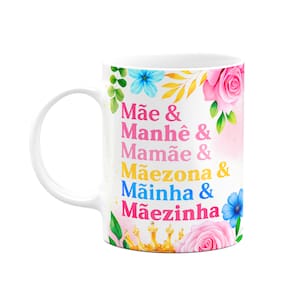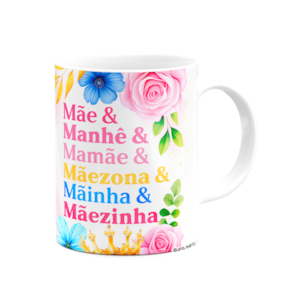 Caneca Floral Mães - Conhecida carinhosamente como...
