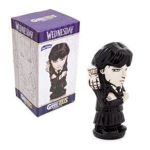 - Um filho de mulher: o copo figura apresenta uma reimaginação tropical de Wednesday Addams com seu parente desencarnado Thing em seu ombro. A equipe não convencional de desajustados mal pode esperar para adicionar confiança assustadora às suas bebidas.