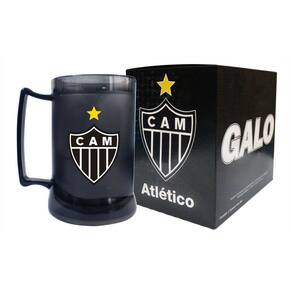 com a galera com a Caneca Gel Atlético Mineiro Fumê. Você coloca ela de boca pra baixo no congelador ou freezer com o mínimo de 5 horas antes de usá-la para que o gel congele, lembrando que o limite máximo é de 48 horas. Depois, é só colocar sua cerveja ou bebida de preferência e pronto: Ela mantém sua bebida gelada por muito mais tempo. Esta caneca é produzida na cor preto fumê e gel transparente e conta com escudo do Galo estampado.