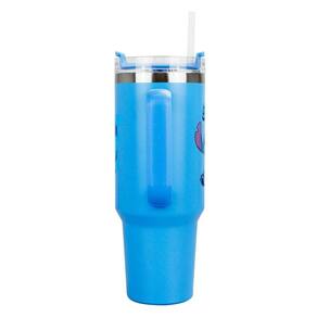Seu design azul vibrante traz o personagem Stitch estampado em cores vivas, com acabamento brilhante e ergonômico para segurar com conforto.
