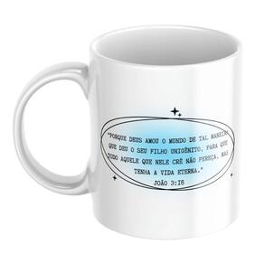 Caneca Personalizada João 3:16 - Porcelana 325 ml Porque Deus amou o mundo de tal maneira que deu o seu Filho unigênito, para que todo aquele que nele crê não pereça, mas tenha a vida eterna. Um dos versículos mais icônicos das Escrituras, agora estampado em uma caneca que transmite fé, amor e esperança. Ideal para quem deseja carregar essa mensagem transformadora no cotidiano ou presentear com propósito. Destaques: Estampa com João 3:16 em design moderno Impressão dos dois lados Alta resistência e durabilidade Vai ao micro-ondas e lava-louças Material premium AAA+