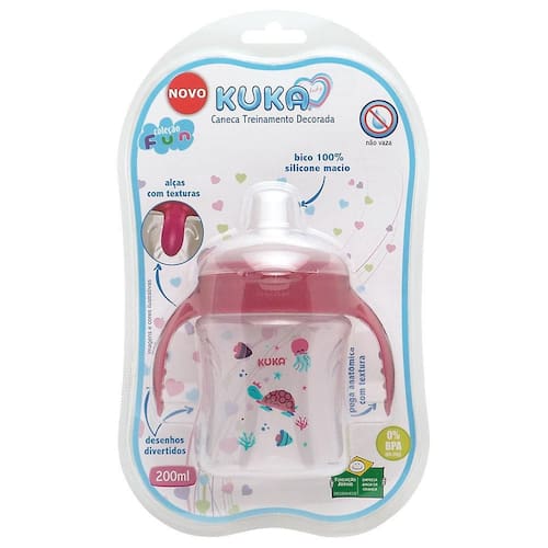 A Caneca Kuka Trein Decor Fun tem capacidade para 200ml e é recomendada para crianças a partir de 6 meses de idade. O bico de silicone é macio, antivazamento e proporciona maior segurança durante o processo de aprendizado da criança.
