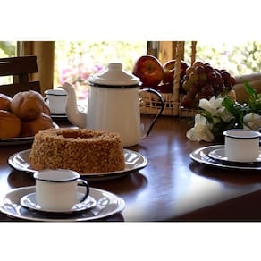 Para servir e decorar, além da beleza, os esmaltados da Ewel possuem vários benefícios. O esmaltado é um produto artesanal feito em aço especial, revestido interna e externamente por esmalte vítreo, adquirindo uma superfície lisa com cor e brilho. Possui diversos benefícios se tratando de cozimento e conservação dos alimentos. O material é atóxico, ou seja, não há contaminação dos alimentos por resíduos metálicos; máxima inibição a proliferação de germes e bactérias no preparo dos alimentos, por apresentar baixíssima porosidade preserva o sabor dos alimentos; superfície lisa que permite uma limpeza muito mais prática. Além disso o produto pode ser levado à máquina de lavar louças. Informamos que pequenos pontos nas peças não são considerados defeitos, e sim características do processo produtivo.