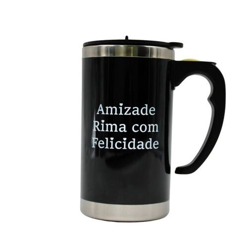 **Caneca Mixer Misturadora Inox 450ml com Tampa – Cor Preto**Descubra a praticidade e eficiência da Caneca Mixer Misturadora Inox 450ml, a solução perfeita para preparar suas bebidas favoritas em segundos. Ideal para café, achocolatado, shakes, chá, sucos e muito mais, esta caneca combina inovação e funcionalidade em um design moderno e compacto. Com um simples apertar de botão, você pode misturar líquidos quentes ou frios de maneira uniforme e sem esforço, proporcionando uma experiência única e prática para o seu dia a dia.**Principais Características do Produto:*** **Material Premium:** Produzida em aço inox e plástico resistente, a caneca é durável, higiênica e fácil de limpar.* **Capacidade Generosa:** Com 450ml, é ideal para preparar bebidas na medida certa para seu consumo.* **Design Moderno e Portátil:** Compacta e leve, pesa aproximadamente 300g, sendo fácil de transportar para qualquer lugar.* **Funcionamento Simples e Prático:** Alimentada por 2 pilhas AAA (não inclusas), oferece eficiência e autonomia para misturar suas bebidas favoritas a qualquer momento.* **Versatilidade:** Perfeita para diferentes tipos de bebidas, quentes ou frias, atendendo a diversas preferências e necessidades.* **Tampa Funcional:** Garante vedação segura, evitando derramamentos e mantendo a temperatura por mais tempo.**Especificações Técnicas:*** **Cor Disponível:** Preto* **Dimensões do Produto:** 16cm x 14cm x 8,5cm* **Peso Vazio:** Aproximadamente 300g* **Material da Caneca:** Plástico e Aço Inox* **Alimentação:** 2 pilhas AAA (não inclusas)* **Capacidade:** 450ml**Itens Inclusos na Embalagem:*** 01 Caneca Mixer Misturadora Inox 450ml com Tampa**Por Que Escolher a Caneca Mixer Misturadora?**Além de sua funcionalidade incrível, esta caneca é uma excelente opção para presentear amigos e familiares que adoram praticidade e design inovador. É ideal para quem tem uma rotina corrida, pois facilita o preparo de bebidas em poucos segundos. Com ela, você economiza tempo e garante uma mistura perfeita, sem necessidade de colheres ou outros utensílios.**Garantia de 3 Meses:**Compre com total tranquilidade! Este produto conta com garantia de 3 meses contra defeitos de fabricação, assegurando sua satisfação e confiabilidade. Caso tenha qualquer problema, nossa equipe está à disposição para ajudar e garantir que sua experiência seja impecável.Garanta já a sua Caneca Mixer Misturadora Inox 450ml e transforme o preparo de suas bebidas em algo prático, rápido e prazeroso!